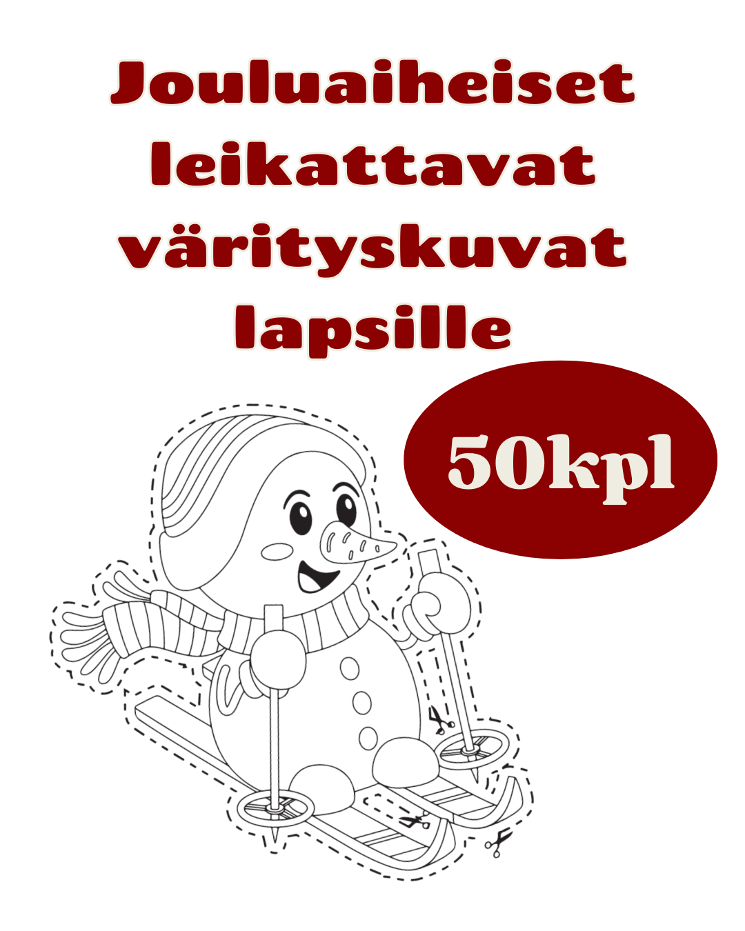 Leikattavat jouluaiheiset värityskuvat lapsille - 50kpl