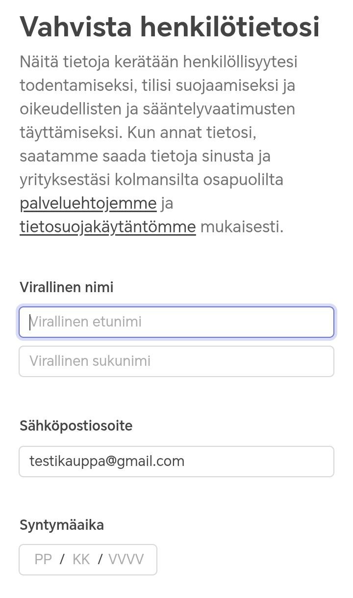 Vaihe 3: Vahvista henkilötietosi (KYC)