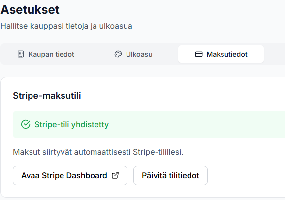 "Stripe-tili yhdistetty" – nyt voit vastaanottaa maksuja! 🎉
