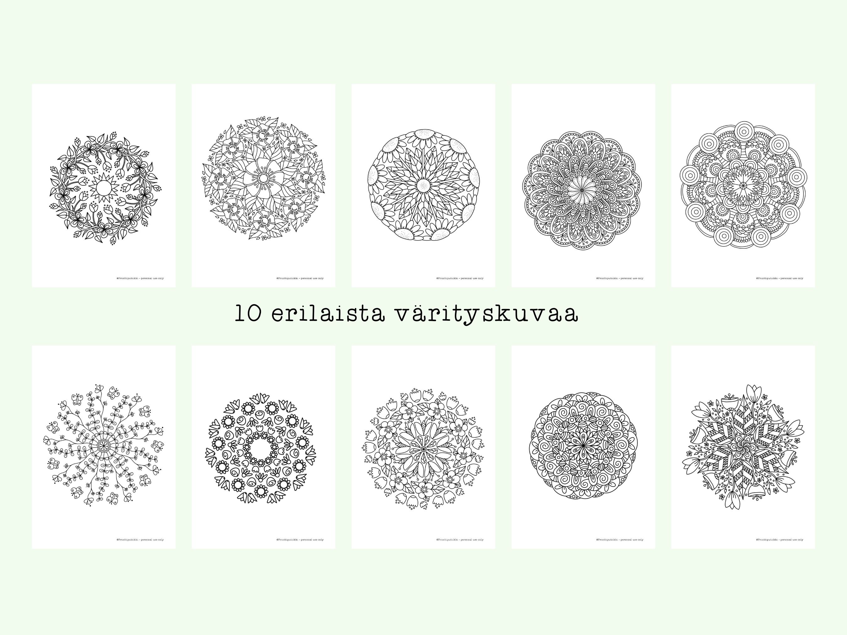 Mandalat värityskirja I 10 sivua